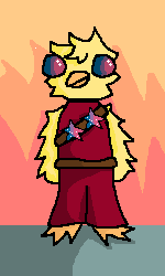- Lospec corrupted this 8 separate times.- Both the stars and his eyes represent a bisexual flag. While this was an accident at first, I decided to keep it over Kevin wanting to support the queers.