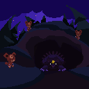 Tags: #ursaluna, #pokemon, #animation, #scenery, #forest, #cave, #teddiursa, #fullmoon