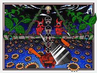 Tags: #sunflowers, #lake, #sword, #spear, #sky, #mountains, #conceptual, #monsters, #character, #nature, #scene, #plants, #stairs