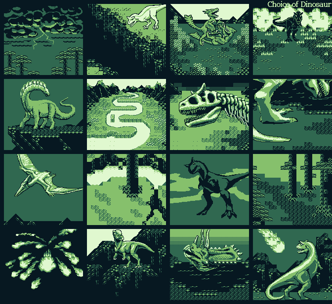 Disastrophism @disastrophism Screens from my visual novel Choice of Dinosaur for the Gameboy Color.
