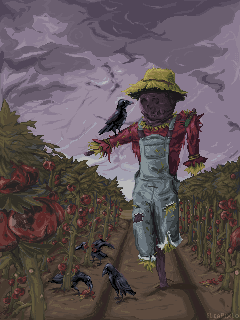 ElCaPixlo @elcapixlo Heyho, this might be an unusual pick for a picture. Rotten tomatoes a scary scarecrow and ravens! But this is a piece thats very close to my heart. In some way its an abstract self portrait of mine. I leave it up to the viewer which parts represent me and which none in some way its even intimate. I started this piece in november 25 and worked from it from time to time until finished in january. And even though the color count is way too high, I kinda messed this up. I still feel proud especially couse of the colors. My last pieces always were way to saturated and I am happy my colors don't look like rubber this time. And I probably can't see tomatoes anytime soon ^^"