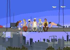 MarkGolden @mark-golden Inspired to the famous shot Lunch atop a Skyscraper, with some pixel art variations