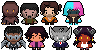DESCRIPTION: My first attempt at small scale pixel art. Second attempt for pixel art overall. It contains the Dispatch team roster, with mostly a color picked palette, since I don't trust my eyes. colorblind.