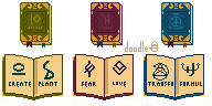 reedletea @reedletea Just tryna work on pixel art as someone who can't really draw. Maybe wanna make a game some day ¯\_(ツ)_/¯ 3 tomes I made for today's daily prompt. I used some glyph languages from the game Chants of Sennaar