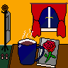 Tags: #pixelart, #96x96, #cup, #mug, #coffee, #tea, #steam, #rose, #flower, #book, #window, #night, #cozy, #peaceful