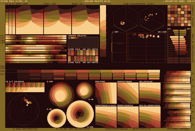 A warm spectrum of oranges, browns, and ochres for retro-futurist adventures, Martian landscapes, and golden space-age dreams.#lifeonmars on BSKY MSTDN INSTA X