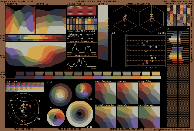 A dark and desaturated somewhat all-round palette focused more around greys, browns, and the fiery end of the saturated colors, and less so on greenery and blue skies. Hopefully usefull for all your post-apocalypse needs.#mutant16 on BSKY MSTDN INSTA X
